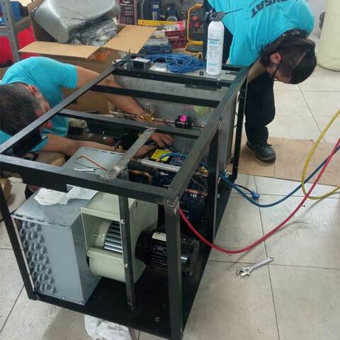 Realizamos trabajos de instalación, mantenimiento y servicio técnico en equipos de refrigeración industrial o comercial, desde cámaras de congelación de gran capacidad, cámaras conservación, túneles de congelación, enfriadoras de agua en temperatura negativa con glicol para procesos industriales, vitrinas expositoras para helados, vitrinas expositoras para carne, manteadoras para helado, abatidores de congelación, granizadoras industriales, economizadores de agua para equipos condensación de agua perdida.